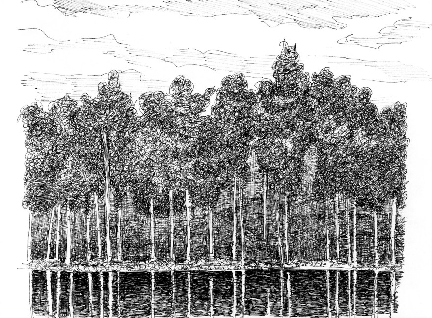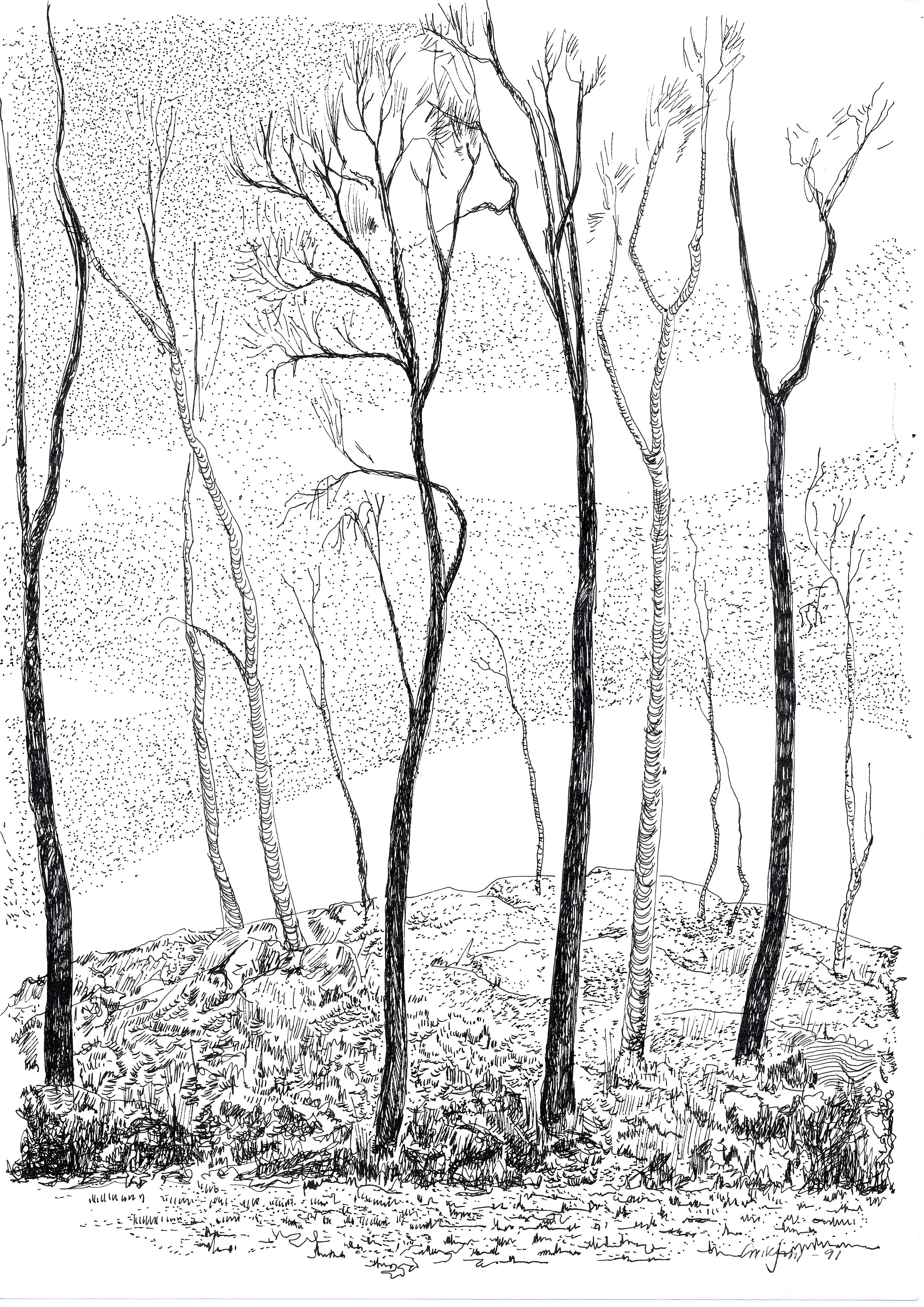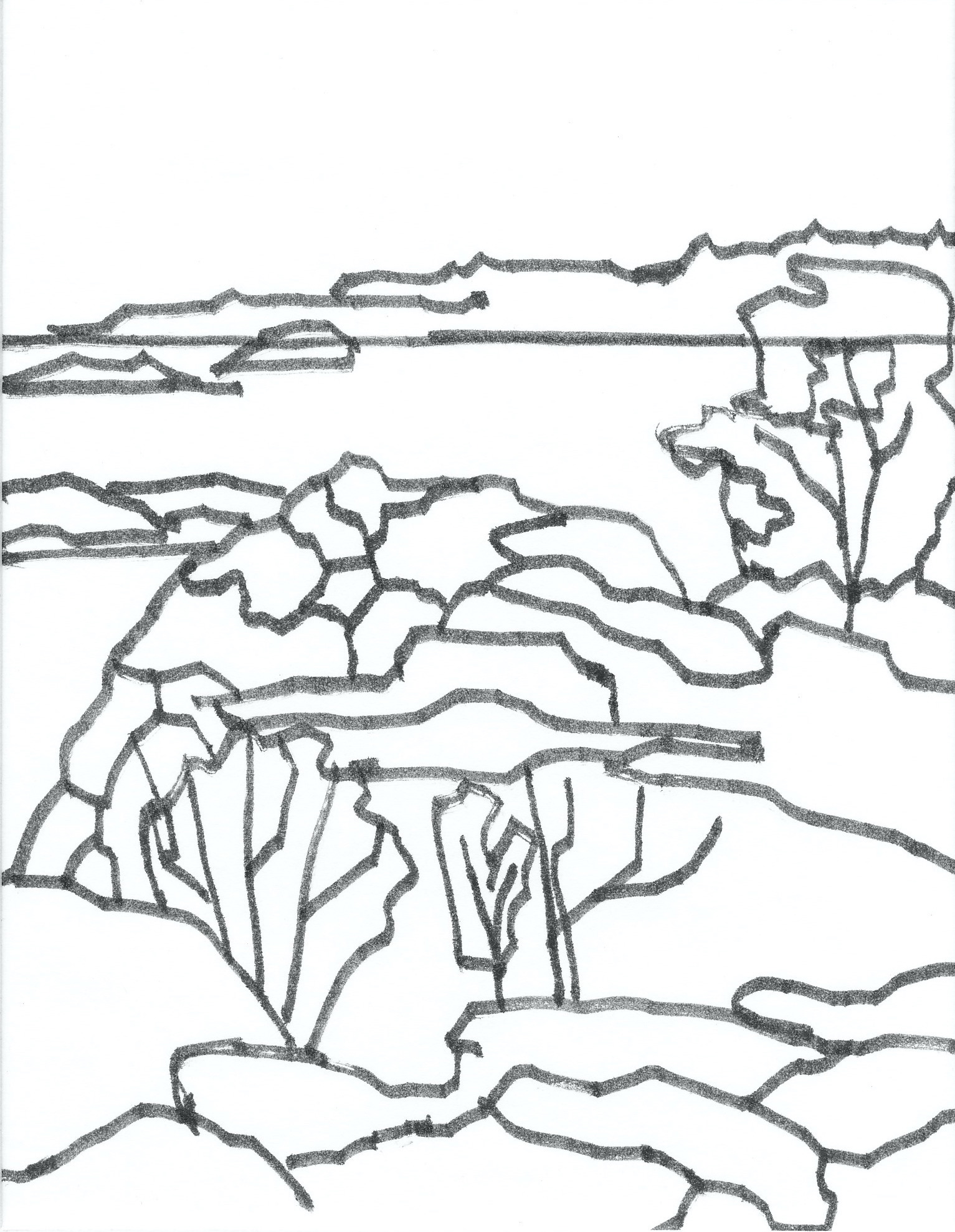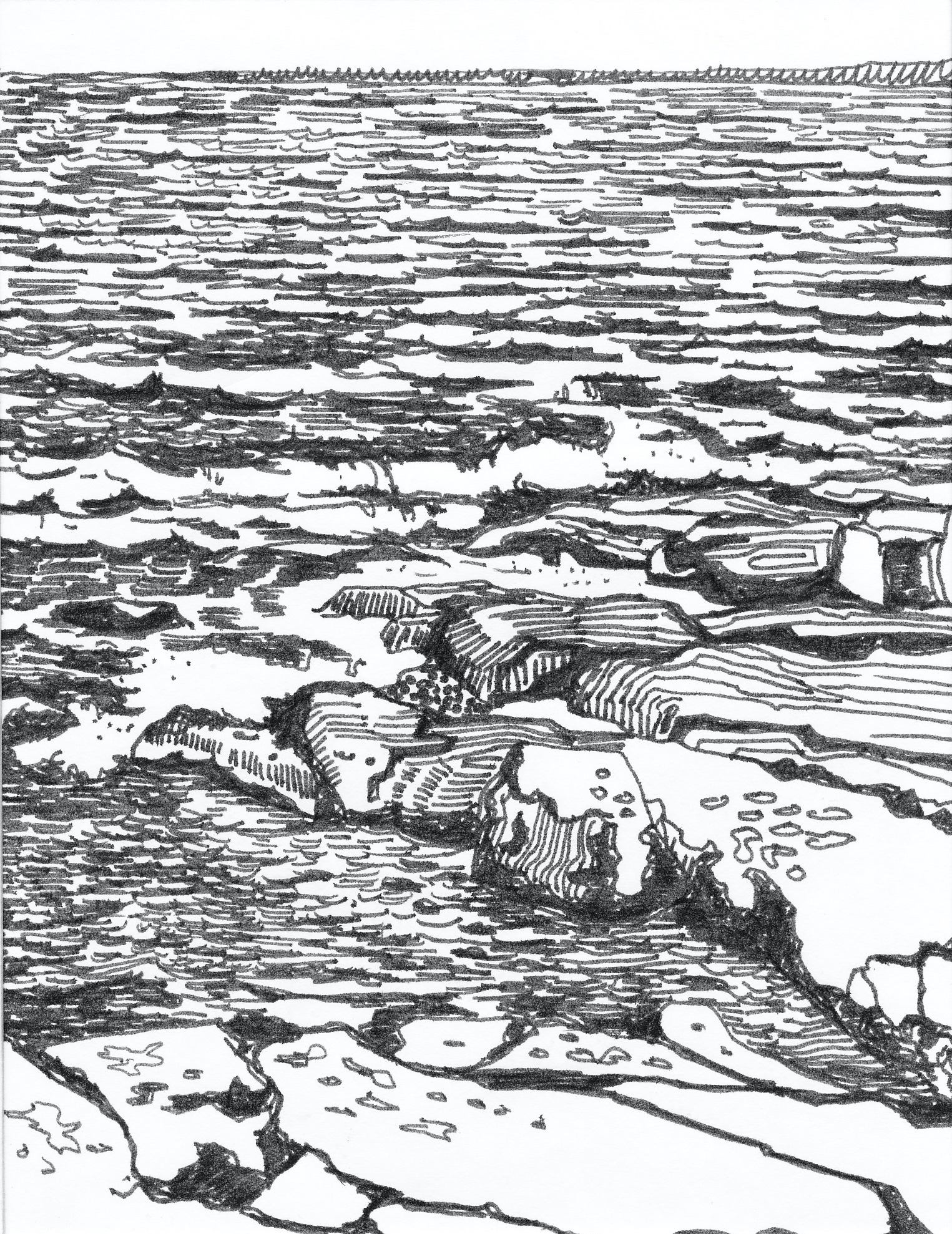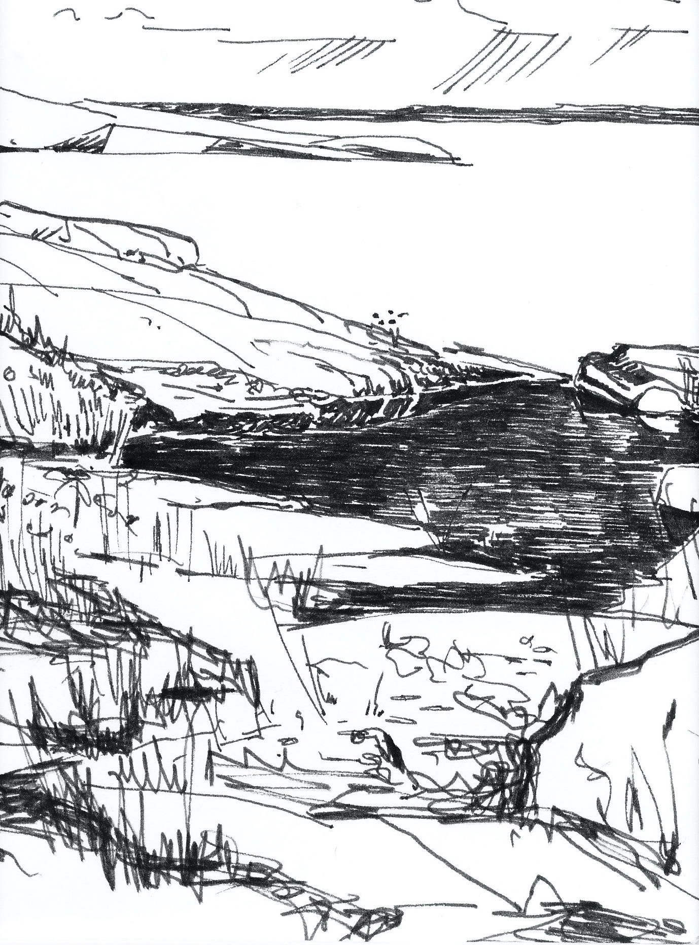 Ur teckningsblocket från båtfärd 1985 utmed Norrlandskusten till Eggegrund. Galtström, Åkeröviken, Häggvik, Barsviken, Kuggören och Eggegrund.