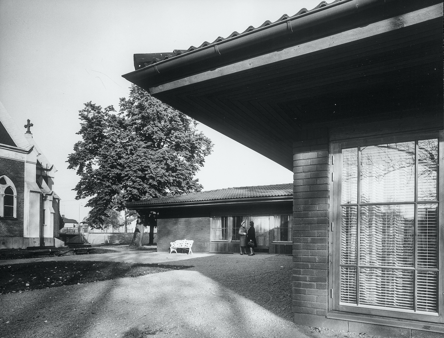 1972 Mikaelsgården, församlingshem, Mikaelskyrkan, Skolgatan 24, Uppsala, gårdsmiljö